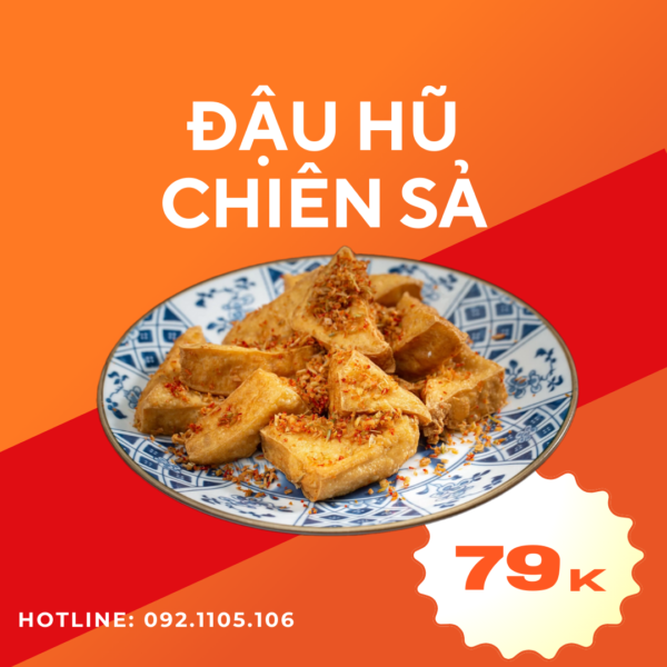 Đậu hũ chiên sả là một món ăn đậm đà, thơm ngon với sự kết hợp tuyệt vời giữa vị giòn giòn của đậu hũ và mùi thơm đặc trưng của sả. Đậu hũ được cắt thành miếng vuông hoặc chữ nhật vừa ăn, sau đó chiên vàng giòn bên ngoài, giữ được độ mềm mịn bên trong. Trong quá trình chế biến, sả được cắt nhỏ và xào cùng với các gia vị như tỏi, ớt, và một chút nước mắm hoặc xì dầu, tạo ra một lớp sốt thơm nồng, cay cay, chua chua, mặn mà bám quanh miếng đậu hũ. Món ăn này không chỉ hấp dẫn bởi hương vị, mà còn bởi sự hòa quyện màu sắc bắt mắt của đậu hũ vàng ruộm, sả xanh tươi và gia vị đa dạng, thích hợp làm món khai vị hay ăn kèm với cơm trắng nóng.